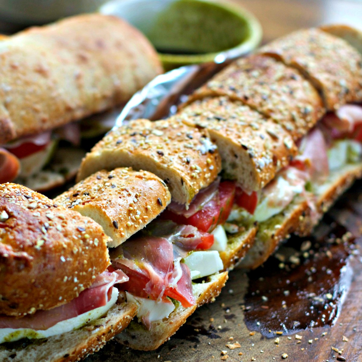 Pesto is awesome in sandwiches like this big fat party sandwich.
