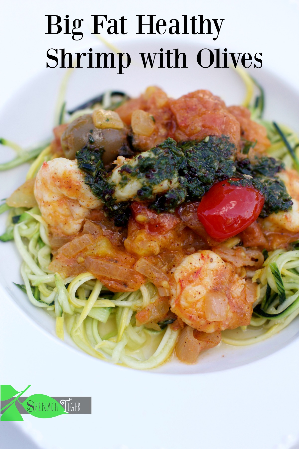 I love this zoodle shrimp dish with tomatoes and spoonfuls of pesto.